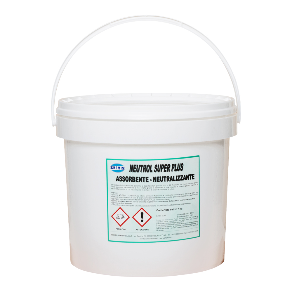 NEUTROL SUPER PLUS è una polvere assorbente neutralizzante certificata per acido solforico conforme al Decreto del 24 gennaio 2011, n. 20 (G.U. n. 60 del 14 marzo 2011). Le polveri speciali in esso contenute assorbono, neutralizzano e rendono inerte l’acido solforico. Confezioni: 7 kg