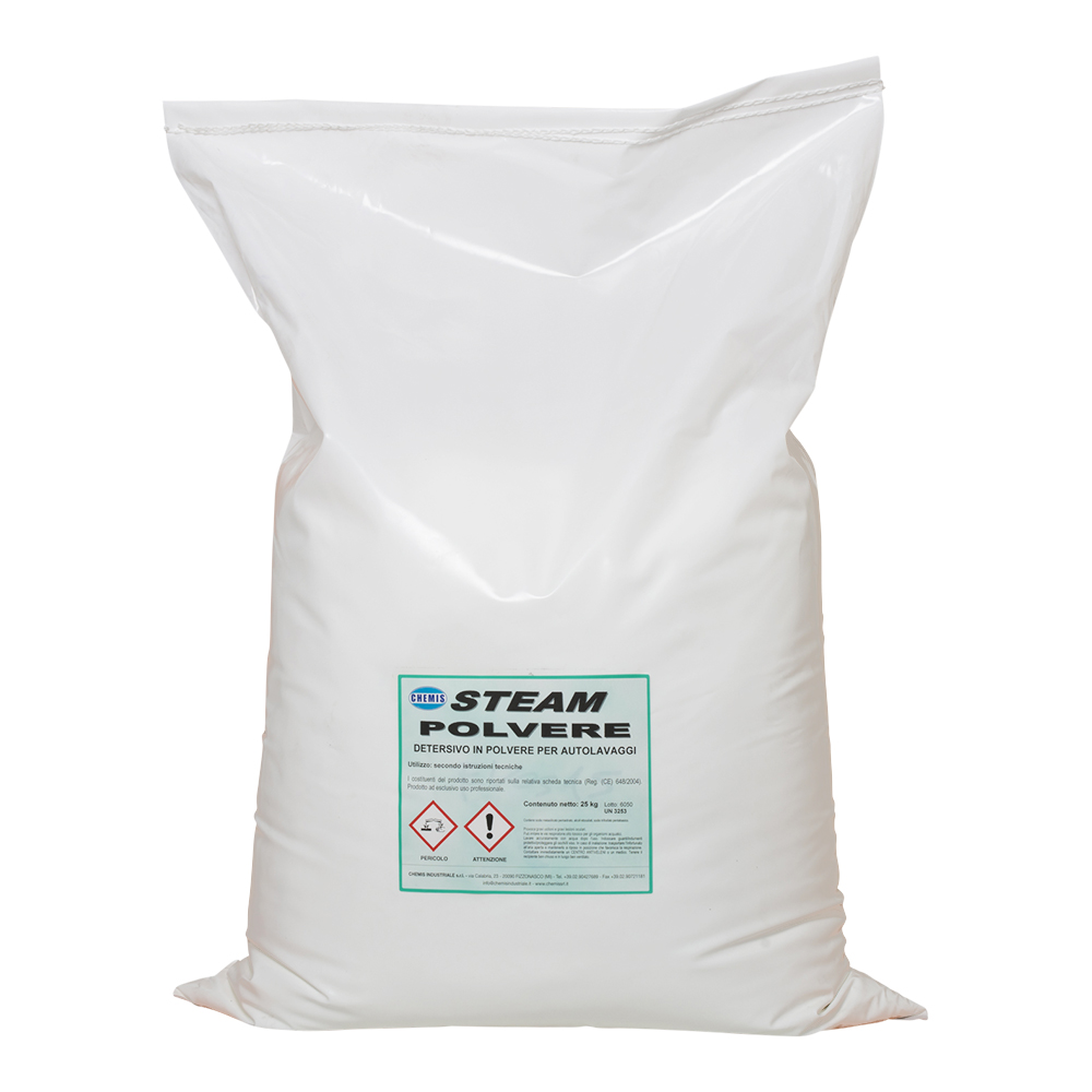 STEAM è un detersivo in polvere per il lavaggio di autoveicoli. Utilizzabile in impianti automatici e self-service, è un prodotto che associa un elevato potere detergente ad una bassissima aggressività verso le vernici.